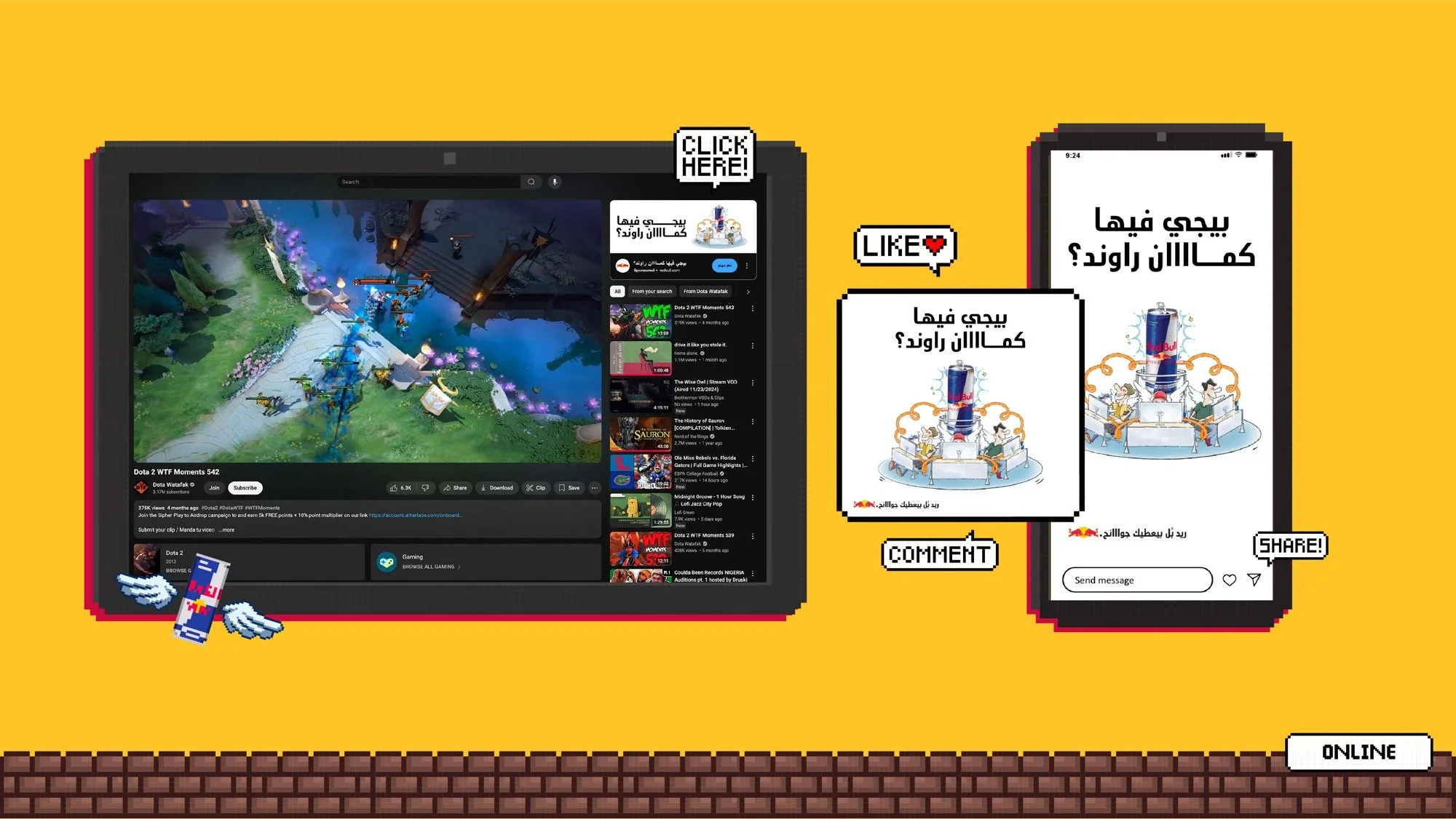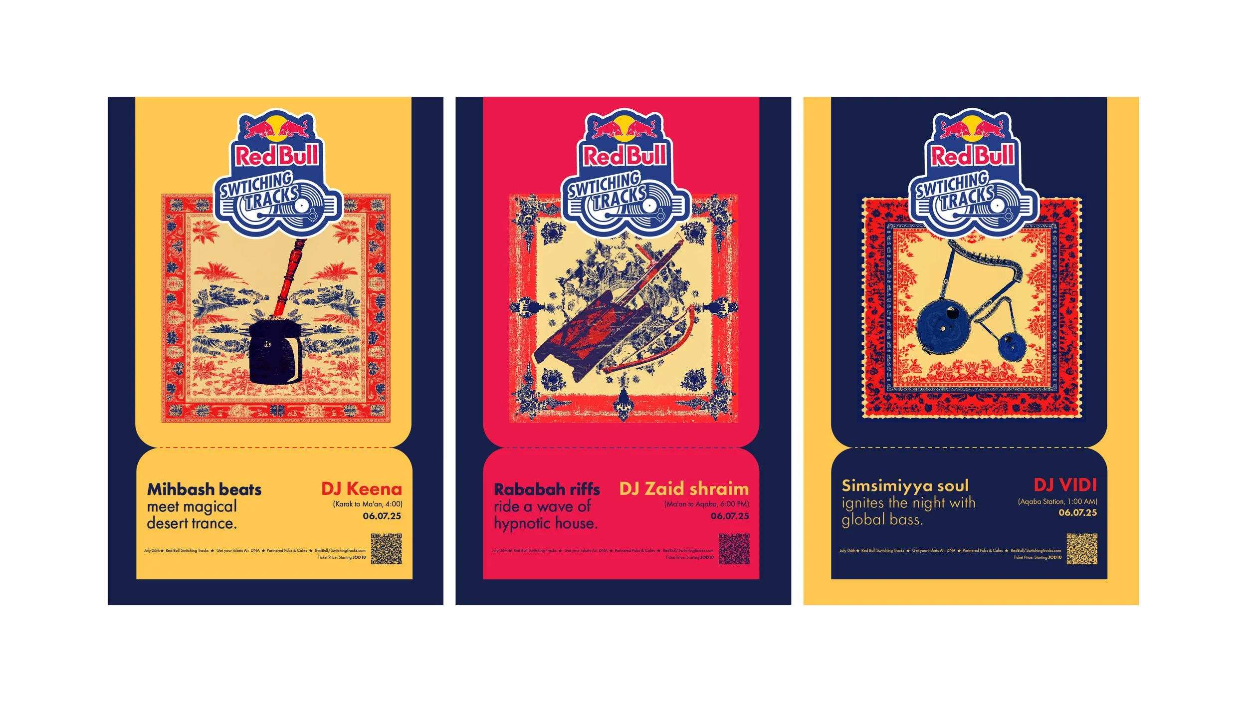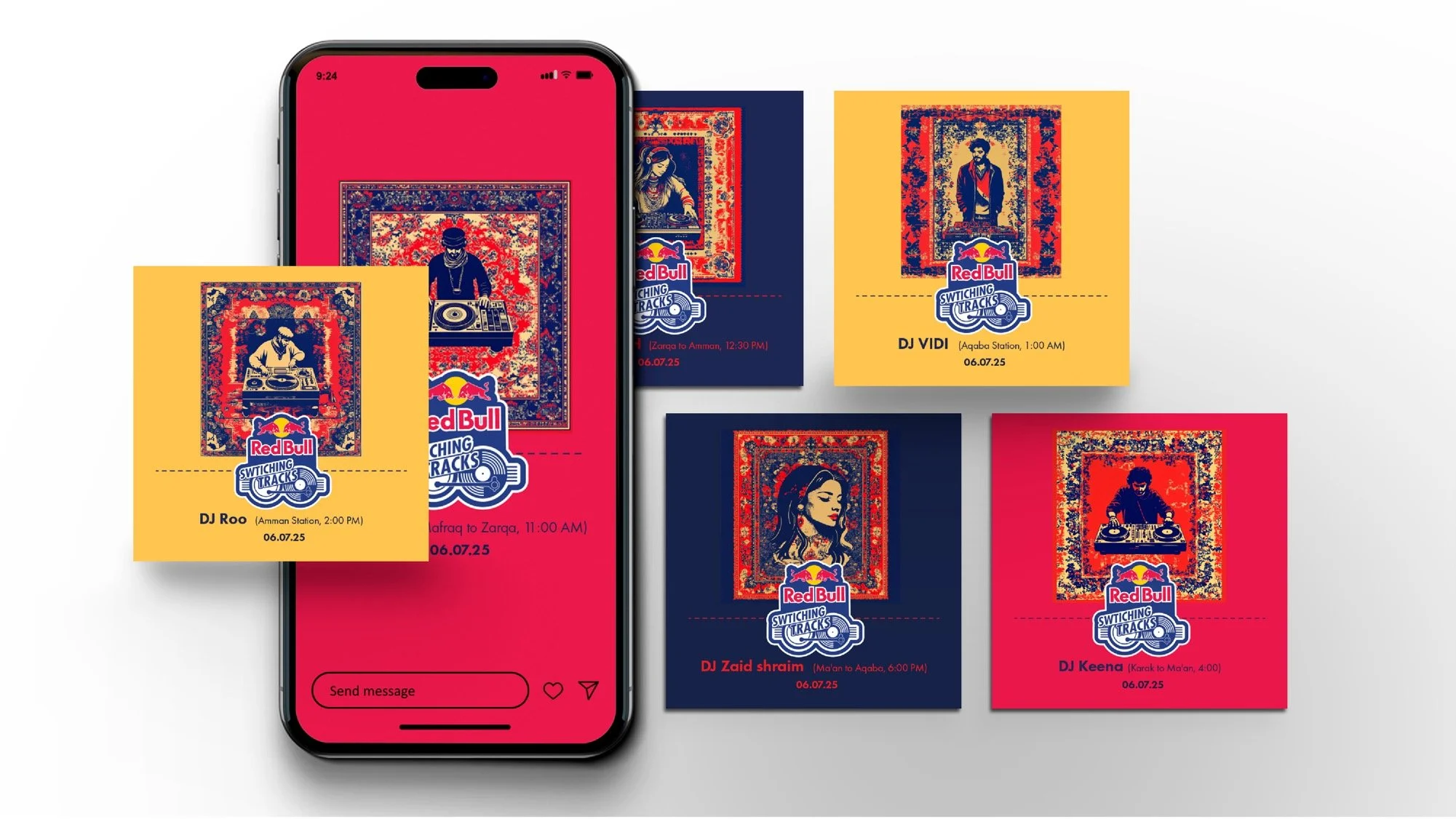 Illustration proposals in the style of Red Bull, headlines that capture a moment, and an idea rooted in the cultural fabric of Jordan.